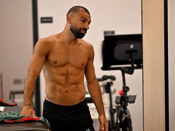 عضلات بطنه البارزة أكثر ما يميز البنية الجسدية لمحمد صلاح، وميزته في التصدي للمدافعين والمناورة في المساحات الضيقة، وهي نتاج تغذية جيدة واهتمامه بالتدريب يوميا في البيت.