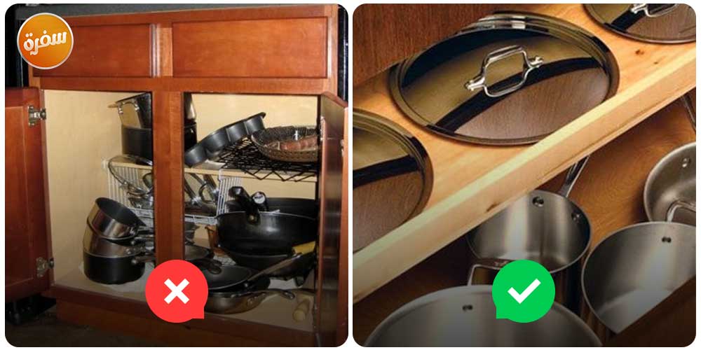• وعامة يجب الاهتمام بتنظيم كافة أواني المطبخ بترتيب الأحجام.