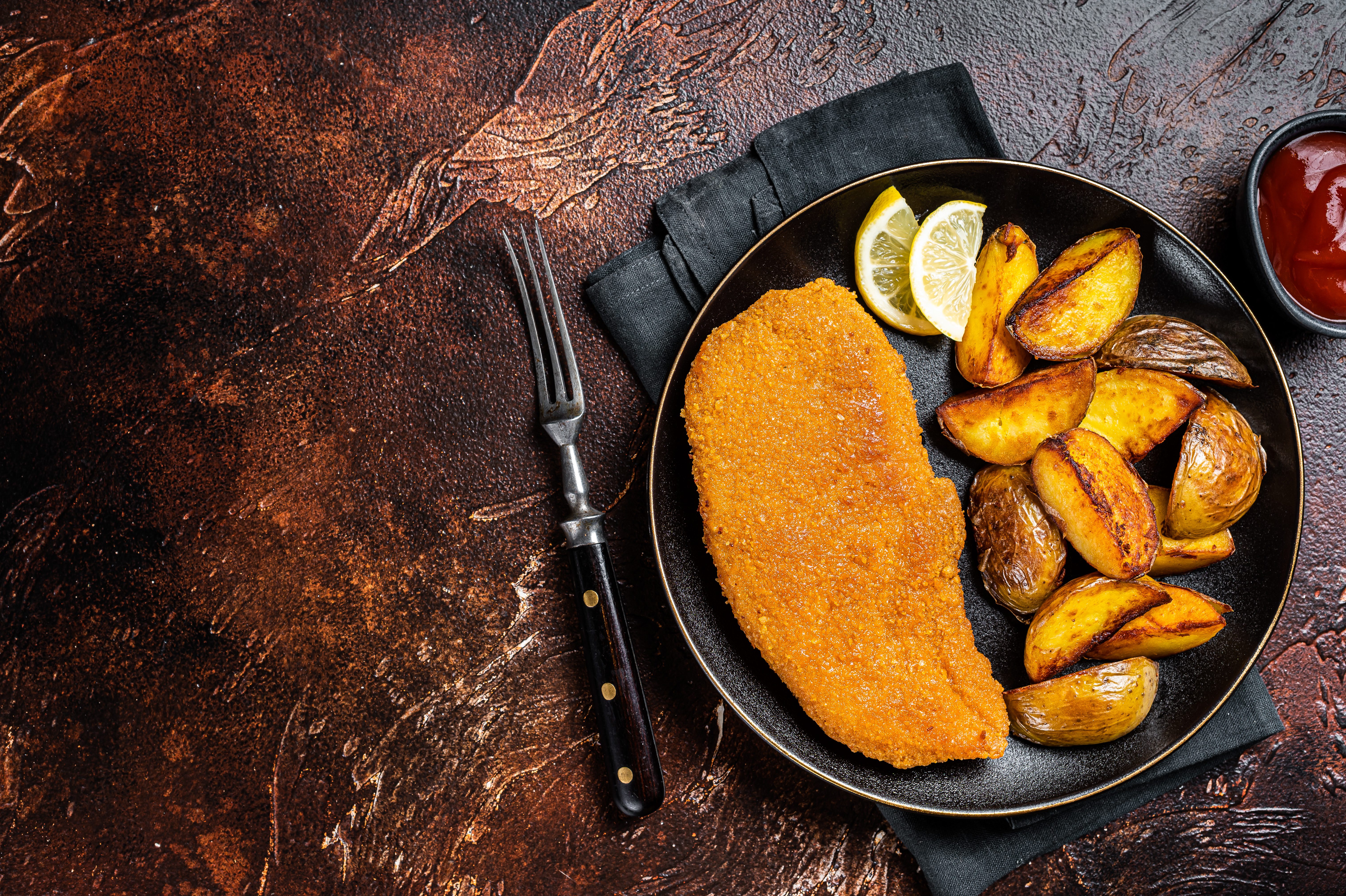 تحضير شرائح البانية المقرمشة الغنية بالنكهة تعتمد في أساسها على التتبيل ثم التغليف المحكم بالقسماط الناعم للحصول على طبقة خارجية مقرمشة غنية.