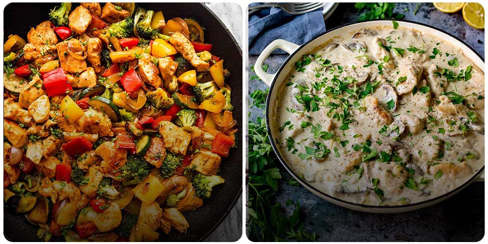 - يمكن للخضروات أن تفي بالغرض في مضاعة كمية الدجاج عند تقديمه، ومن تلك الخضروات قطع الفلفل الرومي أو الملون و الطماطم. ومن مميزات الخضروات أنها لا تؤثر في طعم الوصفة الخاصة بكِ، بل تجعل لها مذاقا لذيذًا.