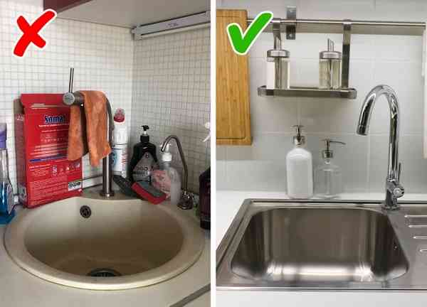 بالطبع تضع كل سيدة جميع الأشياء الضرورية على سطح المطبخ لتكون في متناول اليد، ولكن مع كثرتها ستجعله مزدحما بالمنظفات والمساحيق والأشياء الأخرى، جربي وضع المنظفات ومساحيق غسيل الأطباق في علب خاصة متناسقة ومتوافقة مع الديكور ويمكن شراؤها من أي متجر، سيظهر مطبخك بمظهر أكثر تنظيما كما يجعله أكثر تكلفة.