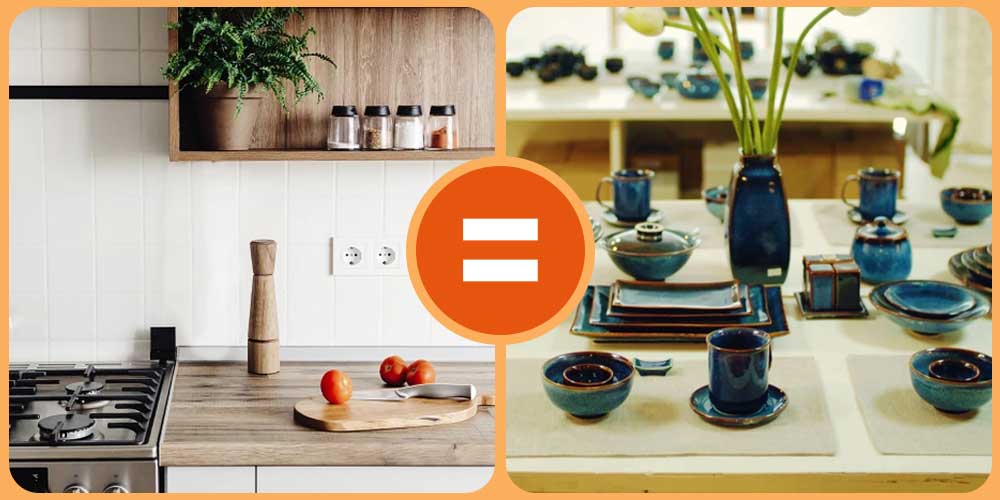 أدوات المطبخ من من أطباق وأكواب قد تفسد مظهر مطبخك في حال عدم تناسقها وتطابقها مع بعضها البعض، لذا يجب اختيار أدوات المائدة متطابقة وبنفس الأسلوب ومتوافقة مع ديكور مطبخك.