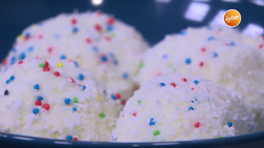 طريقة عمل كرات جوز الهند باللوز
