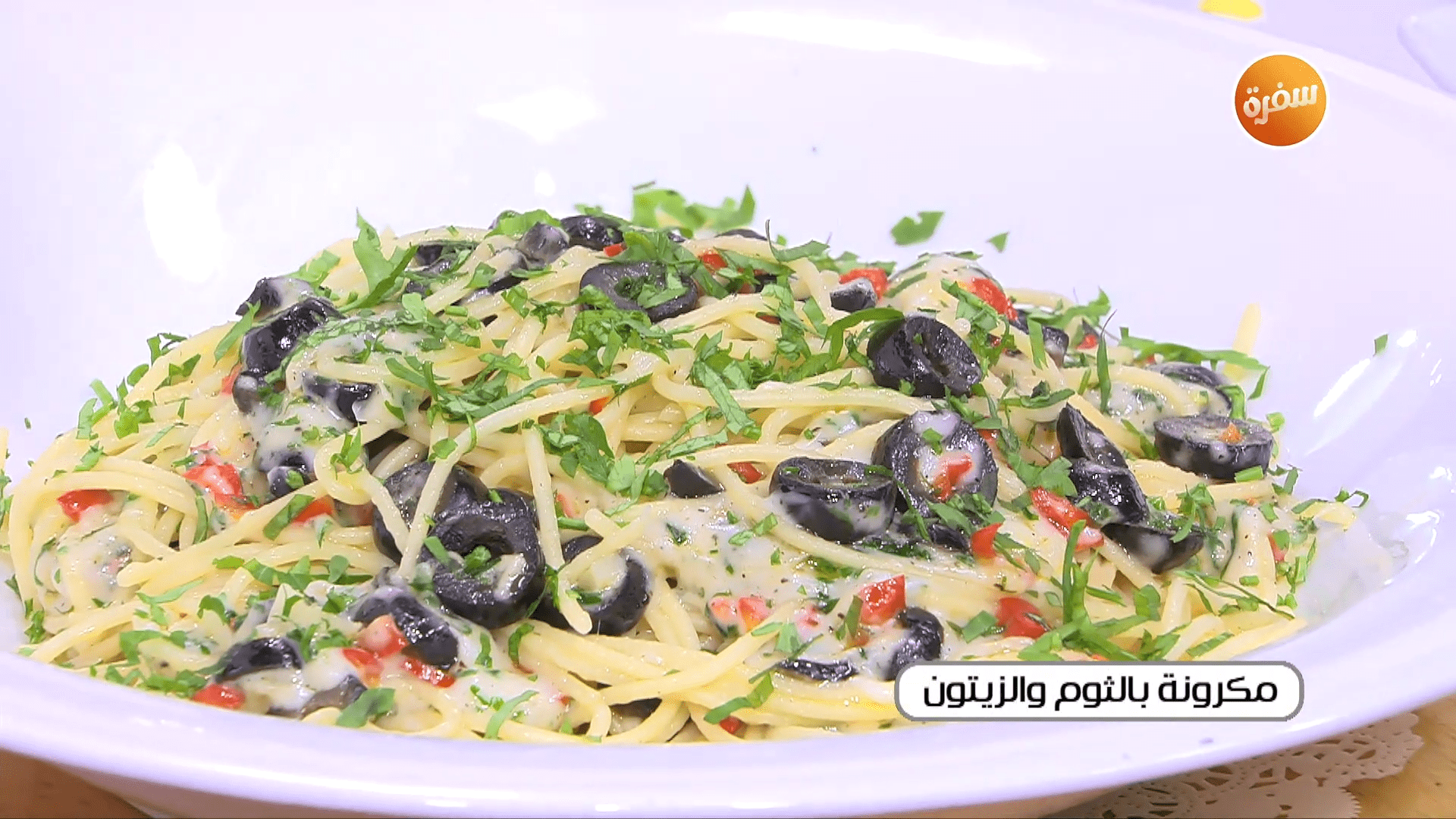 طريقة عمل مكرونة بالثوم والزيتون